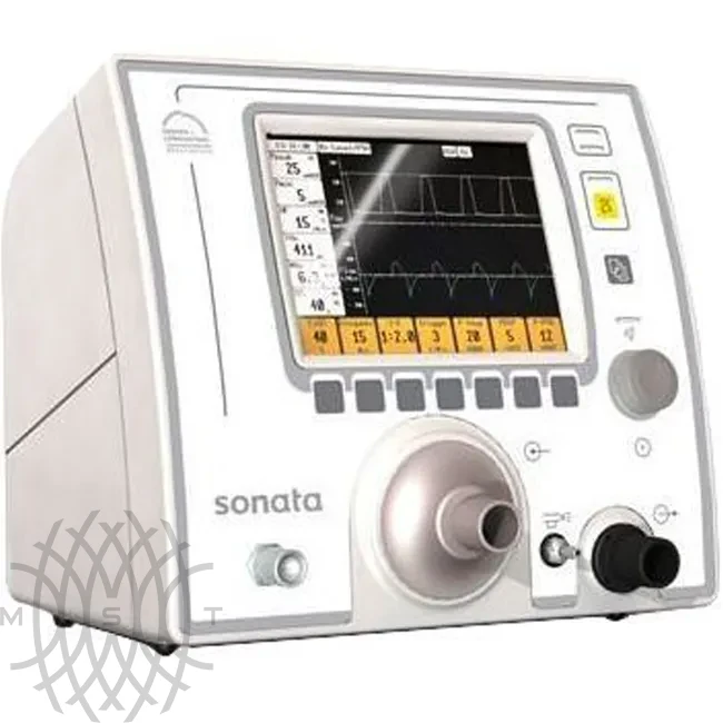 Аппарат ИВЛ Sonata предназначен для использования у пациентов различных возрастов. Действует ограничение снизу по весу в 5 килограммов либо по возрасту в 1 год. Прибор помещен в компактный корпус. В отличие от второго входящего в линейку аппарата (Elisa), Sonata не поддерживает вынос дисплея для удаленной работы. Зато не требует большого свободного пространства в палате интенсивной терапии.