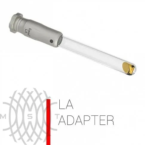 - LA Adapter: интраоральный адаптер для работы по слизистой рта и носа. Применение: Устанавливается на PS03X или R11, в тех случаях, когда нужно повернуть луч лазера на 90 градусов, в частности, адаптер позволяет с бОльшим удобством проводить интраоральный этап процедуры Fotona4D.
