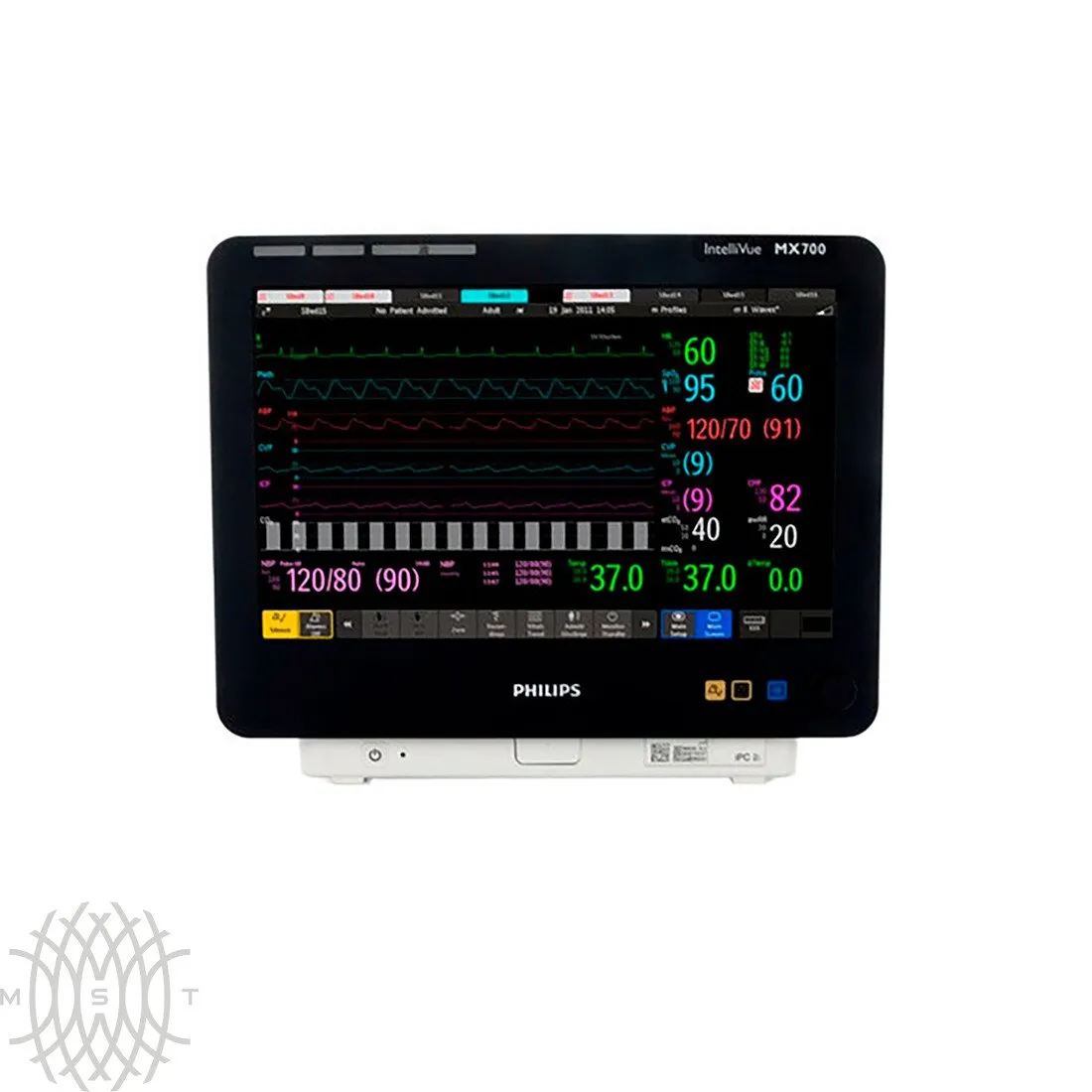 Philips IntelliVue MX700 прикроватный монитор позволяет в режиме реального времени следить за показателями жизненно важных функций пациента. Встроенный компьютер (iPC) позволяет получить необходимую клиническую информацию из внутренней сети больницы и приложений.