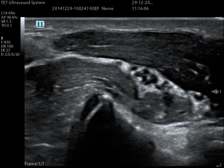 Инструмент для углубленной биопсии: обеспечивает регулирование отклонения УЗ-луча для улучшения видимость иглы, нервных волокон и мелких сосудов.