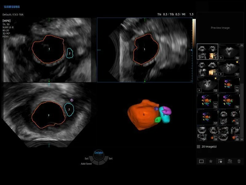 - Модуль автоматического распознавания центральной линии и толщины эндометрия для визуализации коронарного среза матки в режиме объемного сканирования Uterine Contour;